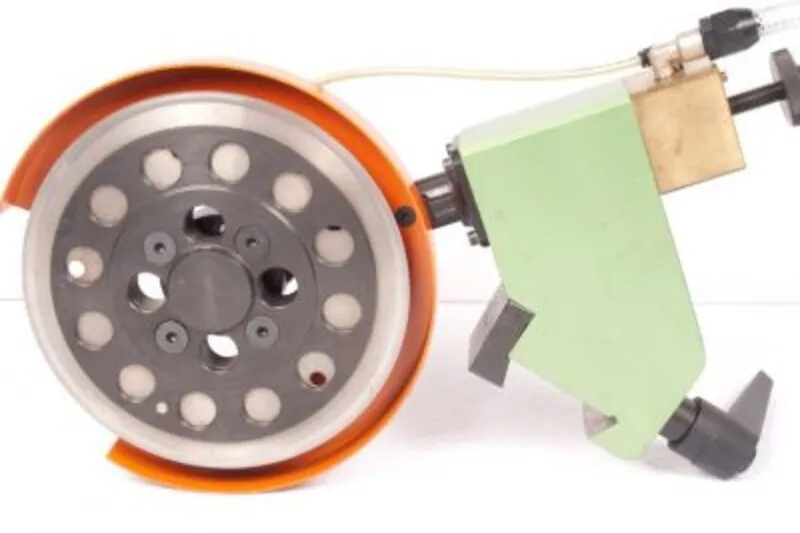Die pneumatischen Obermesserhalter arbeiten im Druckluftnetz mit ca. 4 - 6 bar. Die Halter besitzen eine Zwangssteuerung zum Anlegen der Obermesserscheibe an das Untermesser, die erst in Tätigkeit tritt, wenn die Obermesserscheibe in das Untermesser eingetaucht ist. Damit wird ein Beschädigen der Schneidkanten vermieden.
